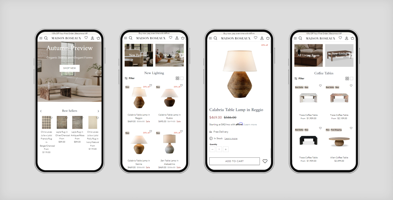 Courtney envisioned a seamless transition from an old Shopify theme to a modern, Shopify 2.0-ready theme to enhance the shopping experience on Maison RoseAux’s website. The goal was to modernize the site’s design and functionality while preserving existing customizations and ensuring a smooth migration. Specific expectations included implementing preorder functionality, optimizing the display of out-of-stock products, personalizing badge displays, integrating Klaviyo for notifications, and improving overall site speed.